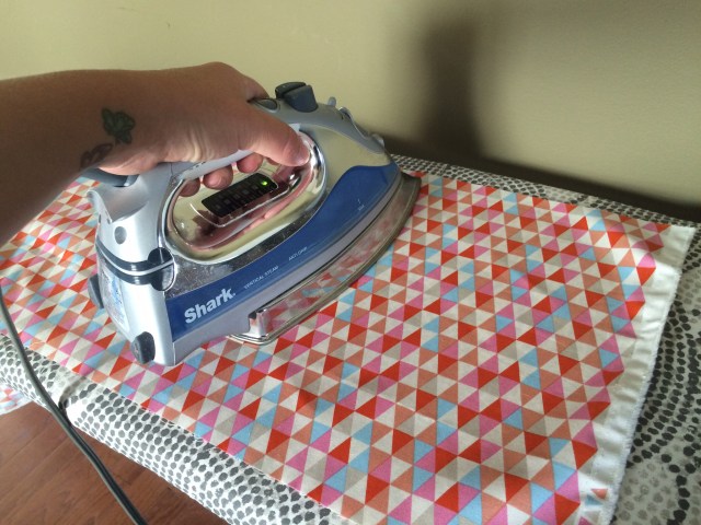 I was still unsure how I was going to make it all come together, but went ahead and ironed the stabilizer on the back of the knit shirts. While I was ironing (and ironing, and ironing), I had the idea to create squares. Usually, I cut my t-shirts for quilts into 15″ squares. Since I had way too many shirts to do that, I would use multiple shirts to make up a 15″ square. Then, sew all my squares together for the finished quilt.