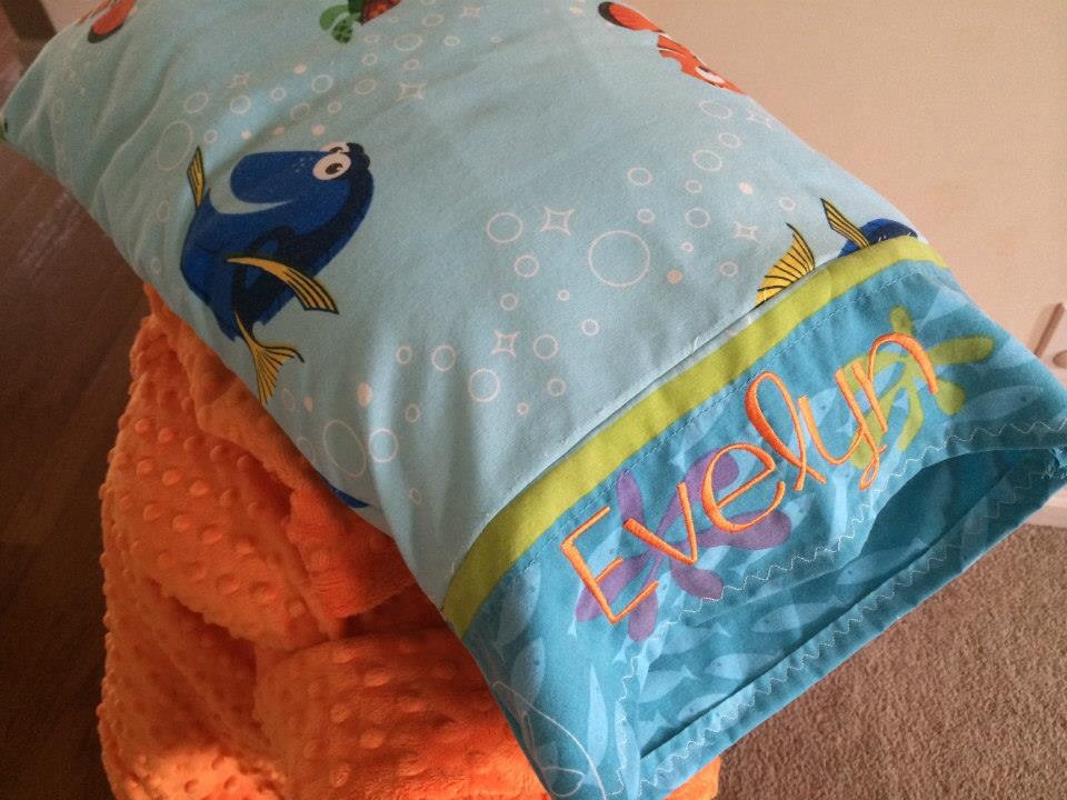 When you’re done sewing, flip your quilt right side out. Iron your edge flat, and pin your hole closed. To give a finished look, I like to top stitch all the way around the quilt. Because you can see the thread, try your best to match the top thread to your top fabric, and your bobbin thread to your fleece.