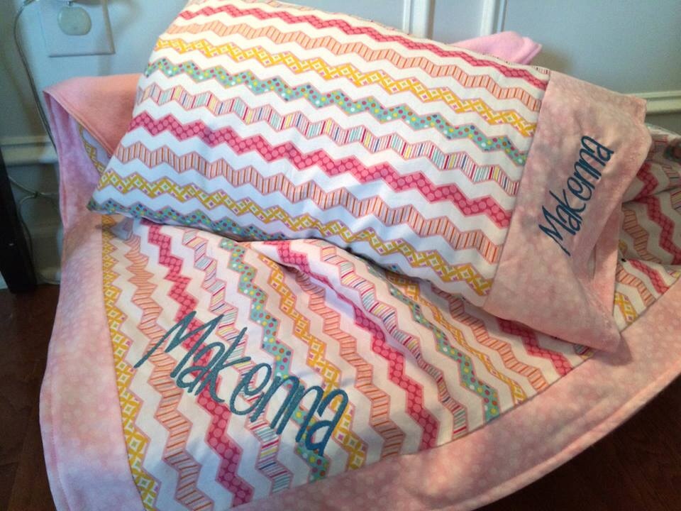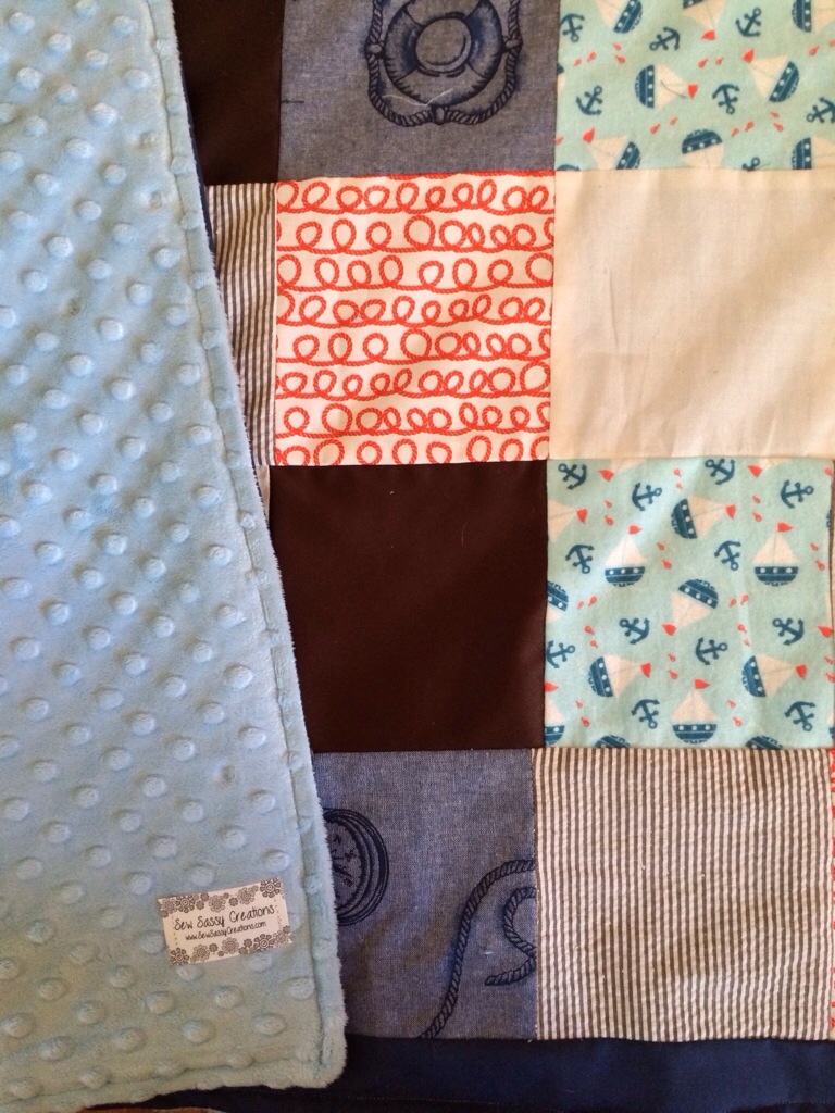 For the quilts I make, I usually pick out 4 fabrics that coordinate with the dress. My blankets measure anywhere from 36″ to 42″ square when completed, and if this is the size you desire, 1/4 of a yard is all you’ll need of each.
