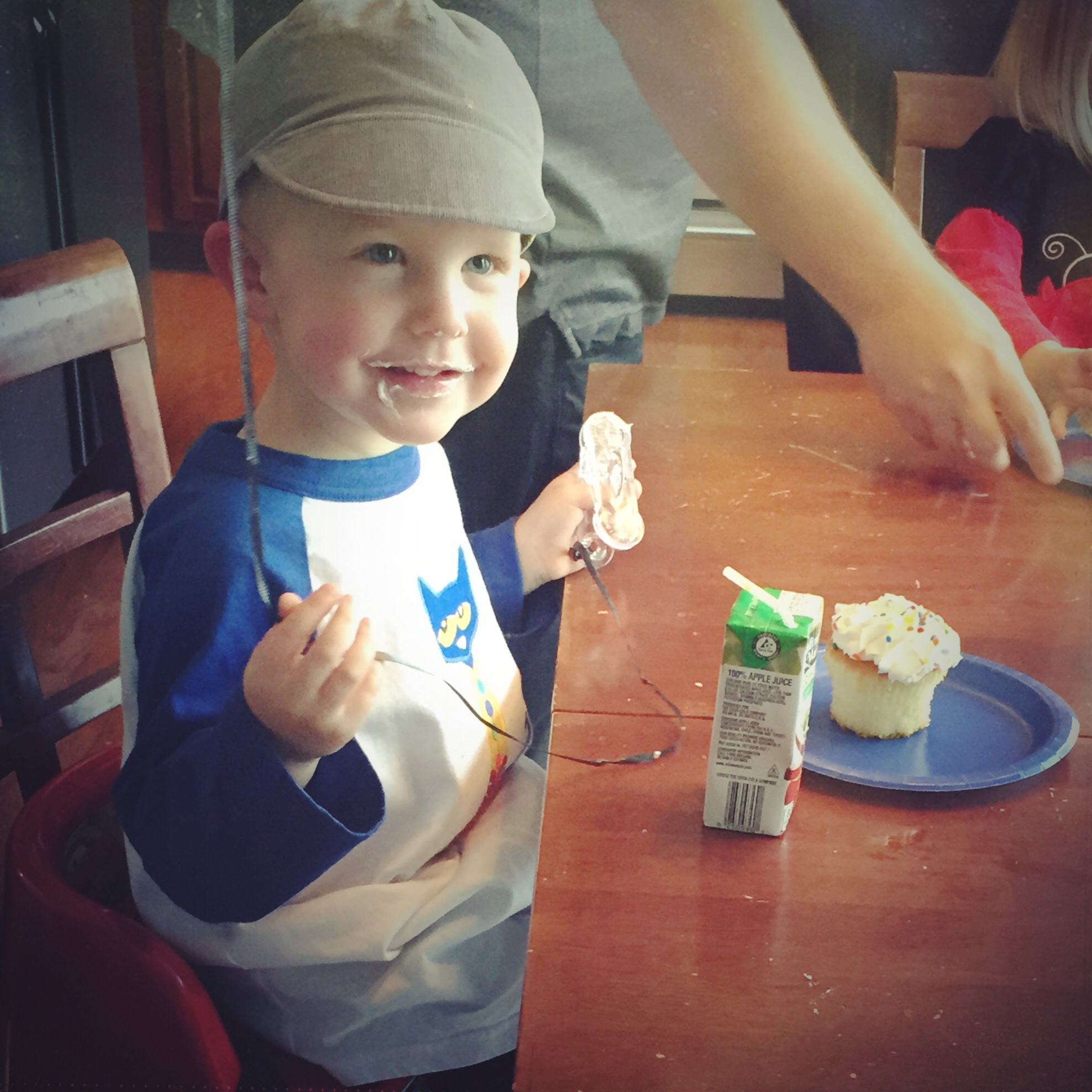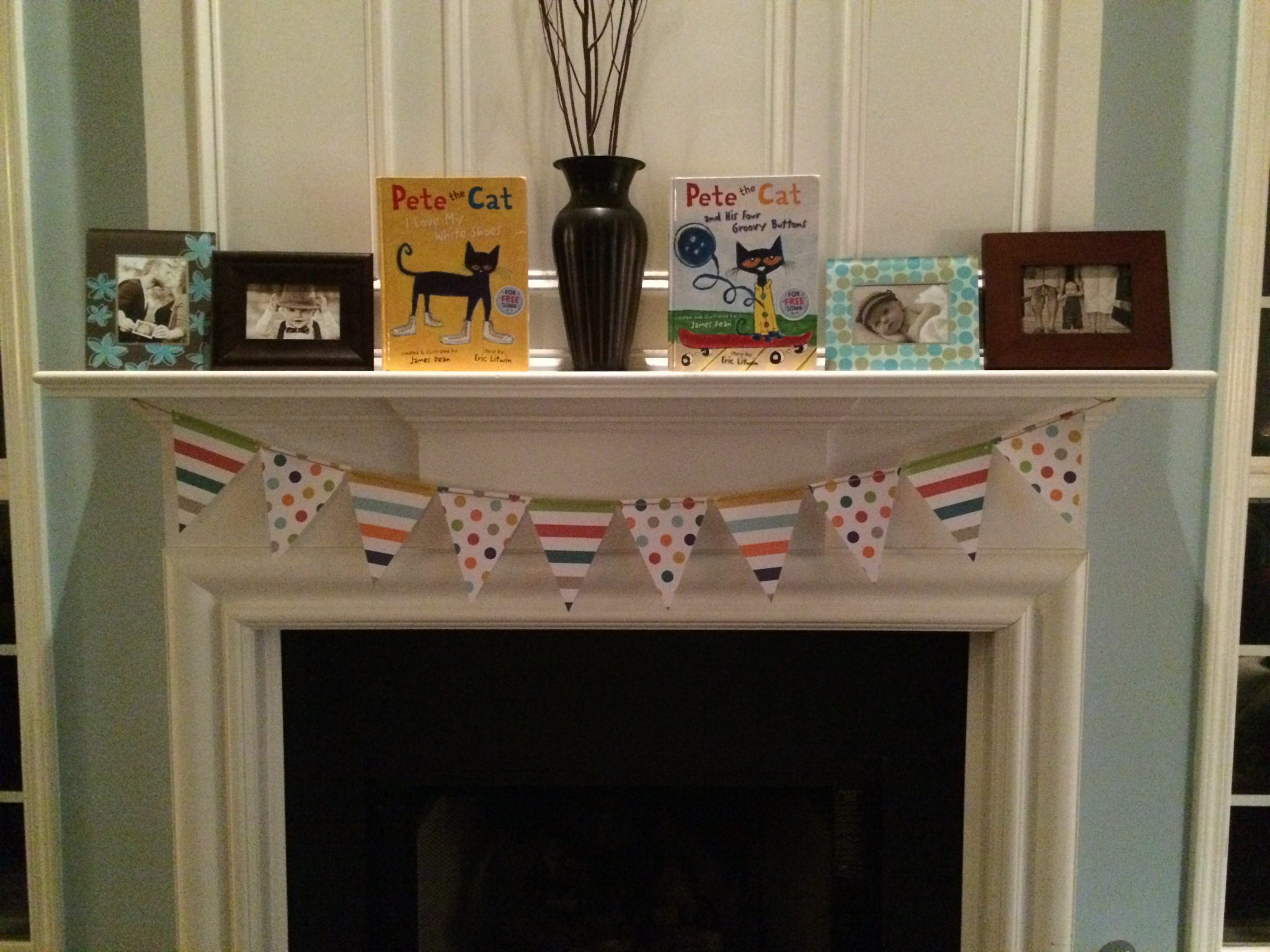 Decorations were simple. I used scrapbook paper to make bunting for the mantle and put some books up there too. I never got a picture of the food, or the cake pops that I slaved over. The kids had cupcakes. Zac had a fantastic time and I’m so thankful for our friends and family who came to celebrate with him!