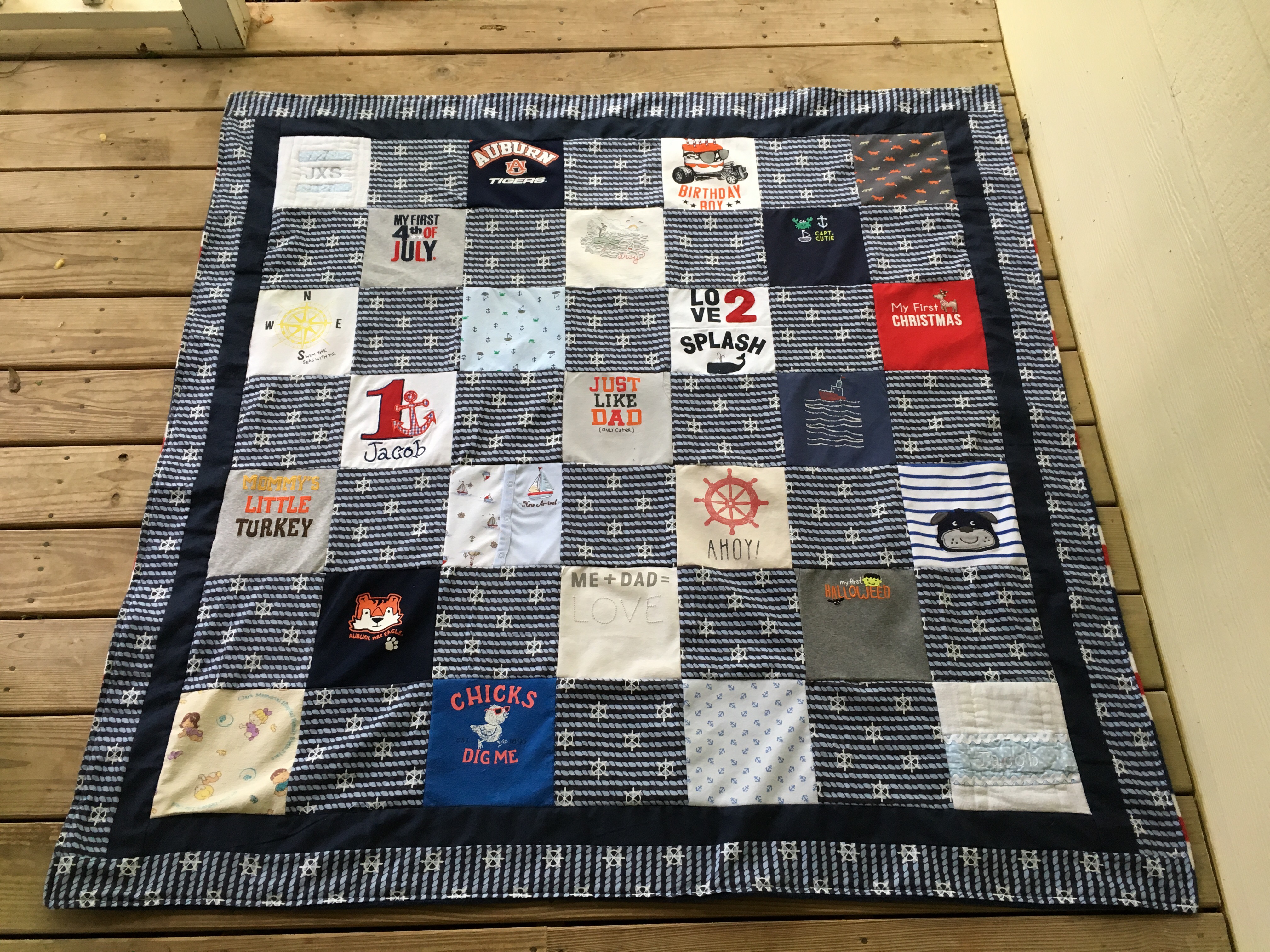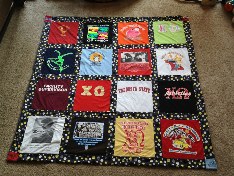 I created my first t-shirt quilt in 2005 using my high school t-shirts. I then created a quilt for my sister, then one with my college shirts. It wasn’t long before I was making quilts for friends, and then friends of friends. To this day, it is one of my favorite things to create because I am able to take something with meaning that isn’t being used, and make it new again.